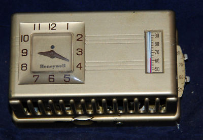 Antique vtg old Honeywell wall thermostat w/ clock !