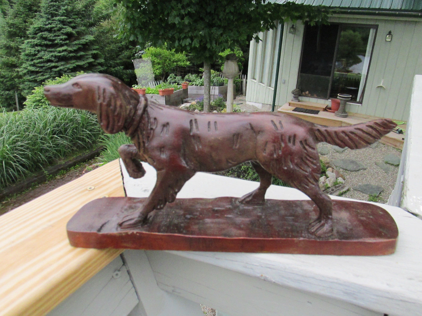 FINE WOOD CARVED POINTER ENGLISH OR IRISH SETTER DOG FOLK ART