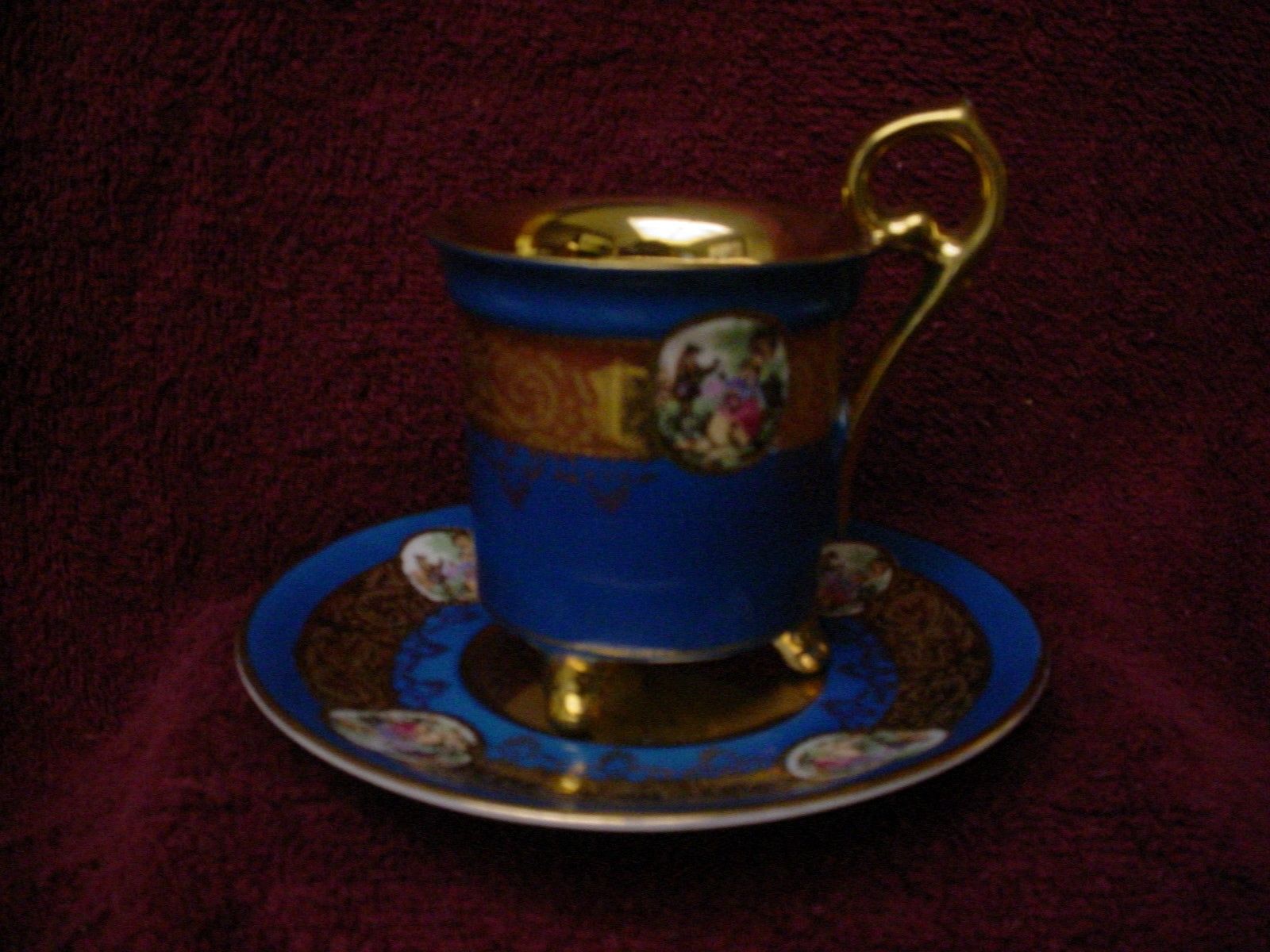 VINTAGE TEA CUP AND SAUCER COBALT BLUE WITH GOLD TRIM - BEAUTIFUL