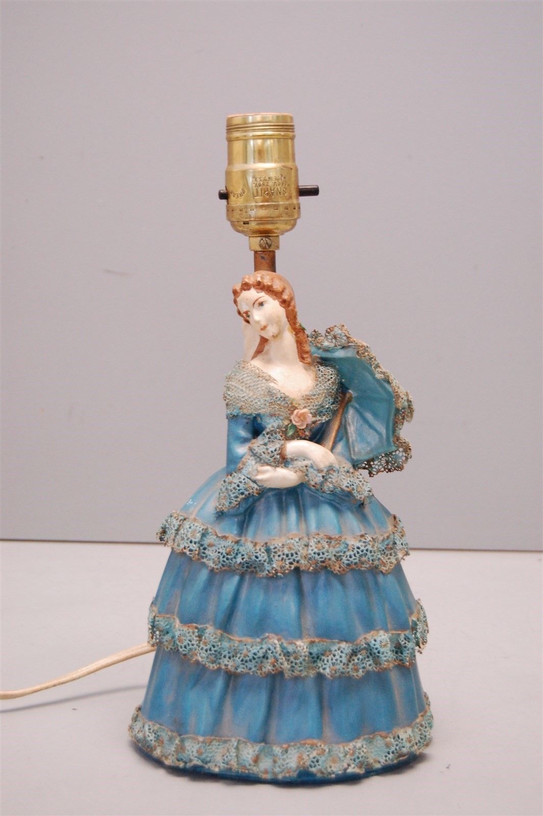 Vintage Woman Lady in Blue Dress Ceramic Table Lamp Light 12"H