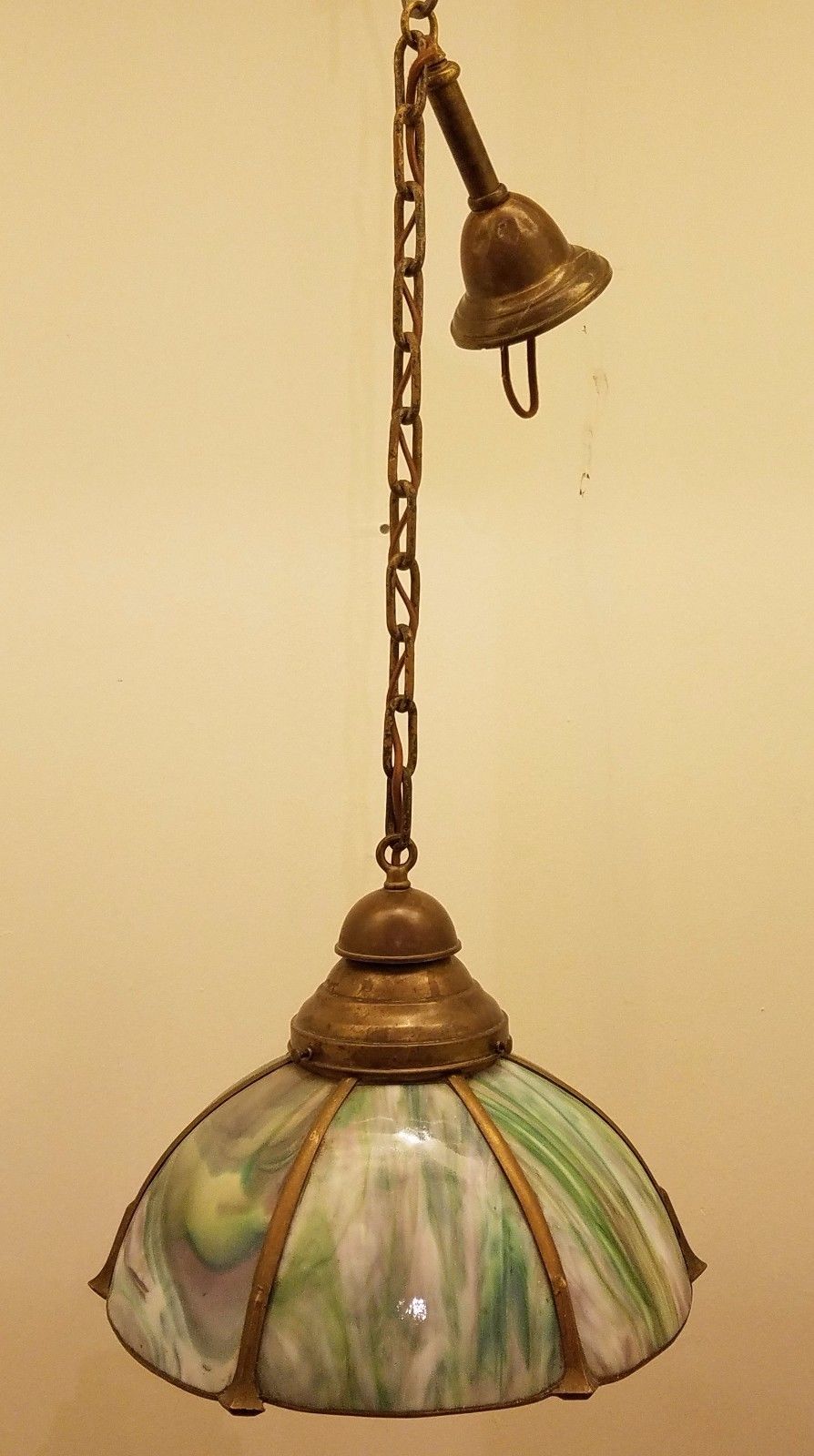GREEN SLAG GLASS HANGING SHADE HANDEL ERA