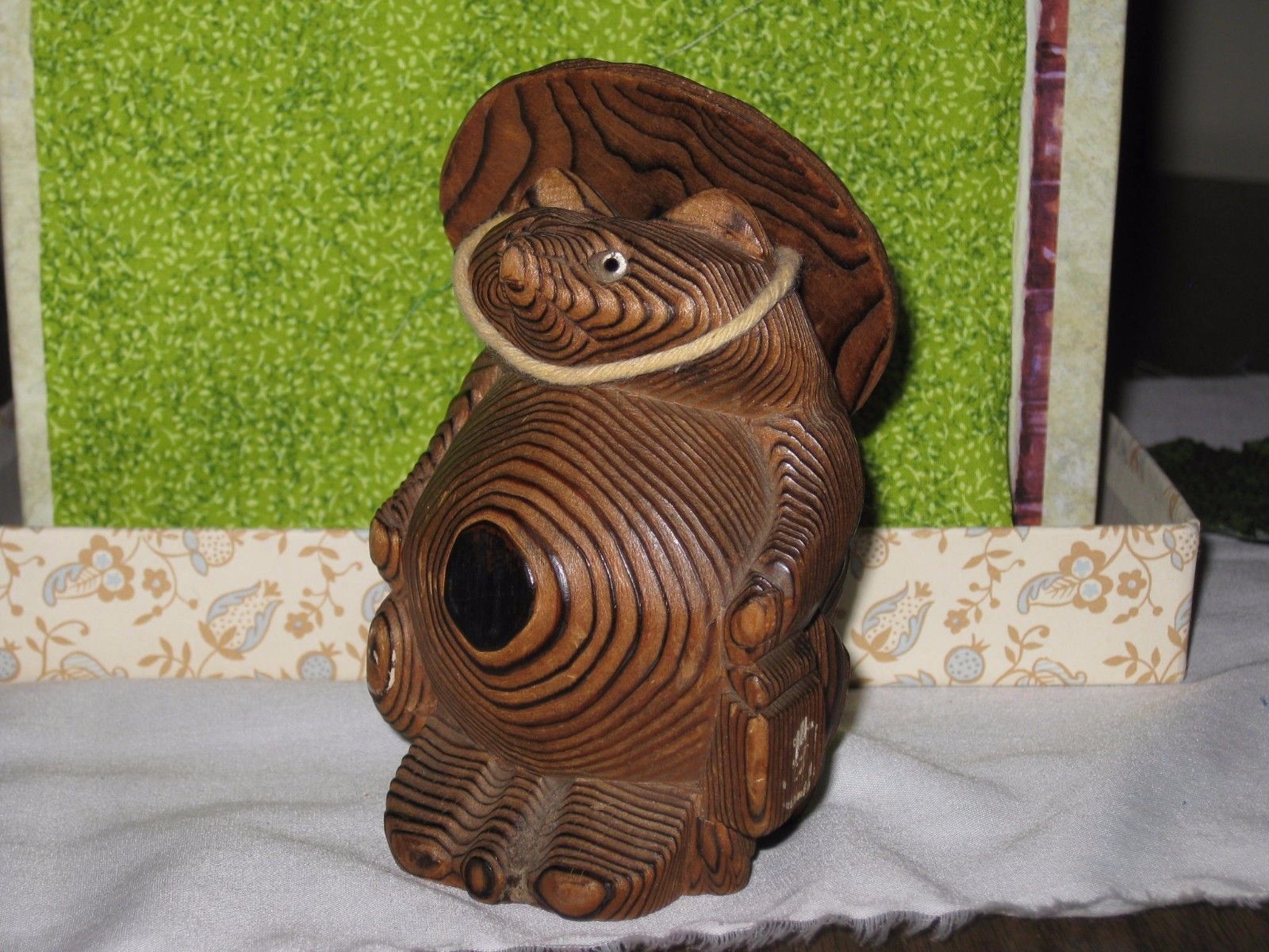 Title (ebay affiliate link): VINTAGE Carved WOODEN Tanuki, Japanese Racoon Dog w/ COOLIE HAT 3.5" tall