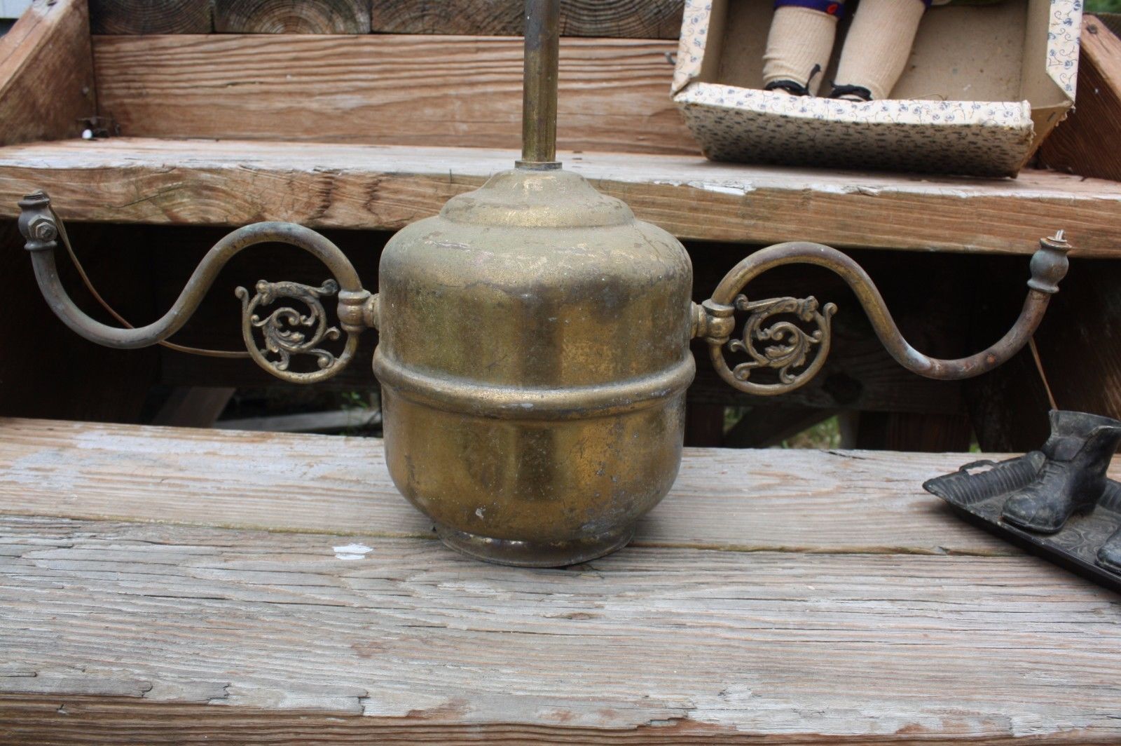 ANTIQUE FANCY BRASS GAS LIGHT FIXTURE