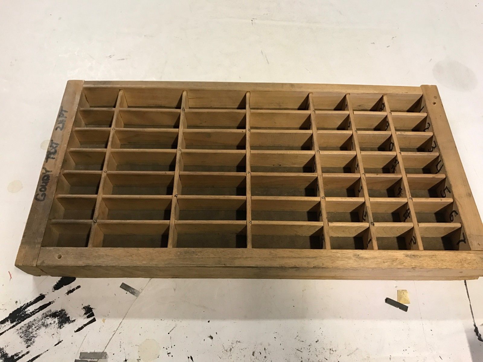 VINTAGE 16 1/2 X 8 1/2 X 1 1/2 PRINTERS TYPESET LETTER DRAWER SHADOW BOX