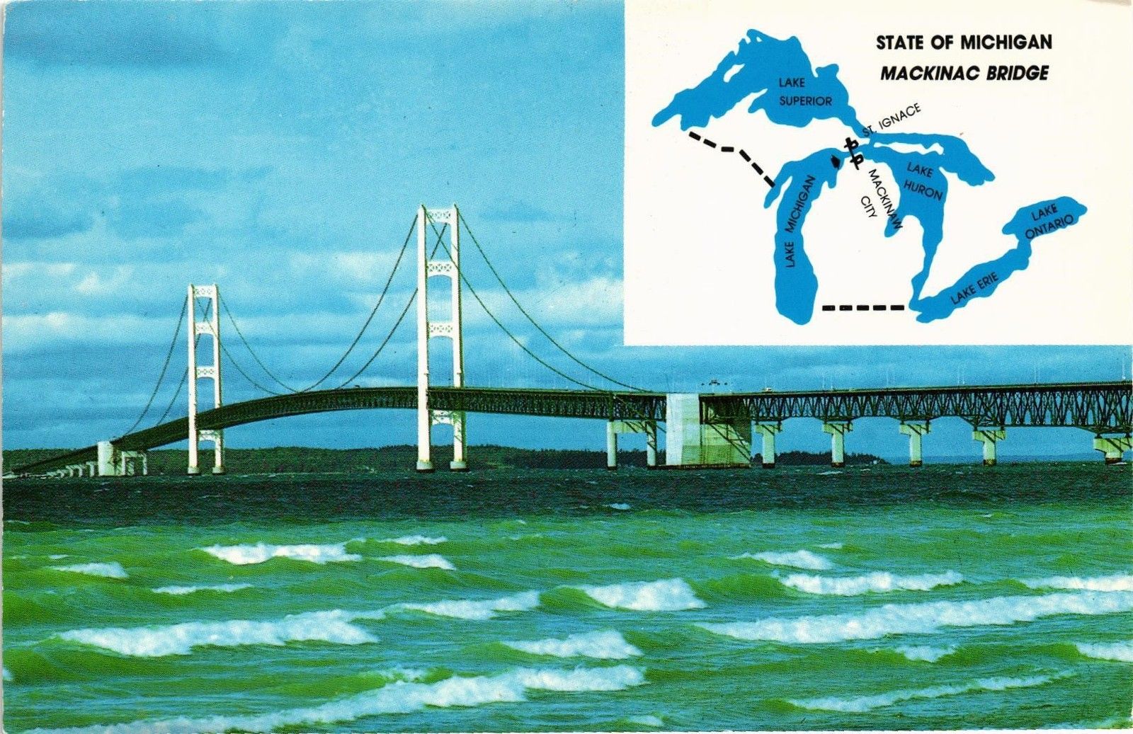 Title (ebay affiliate link): DR JIM STAMPS US POSTCARD MICHIGAN MACKINAC BRIDGE 1987