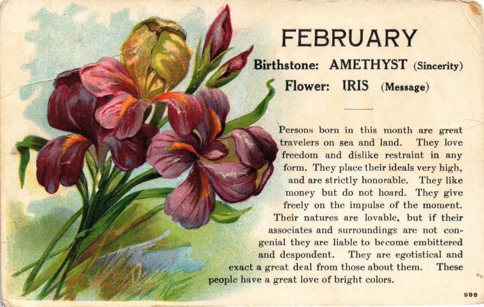 Title (ebay affiliate link): DR JIM STAMPS US POSTCARD FLOWERS FEBRUARY BIRTHSTONE AND FLOWER WITH MESSAGE