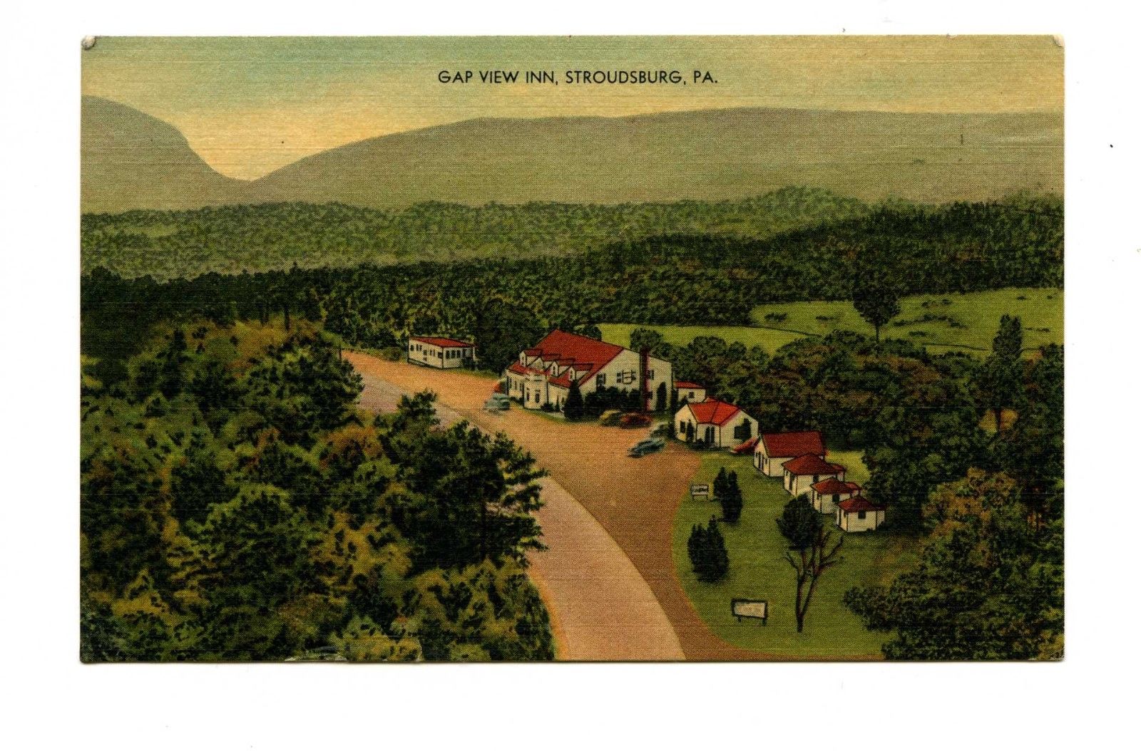 Title (ebay affiliate link): POSTCARD STROUDSBURG PA GAP VIEW INN GRILL DINING CABINS