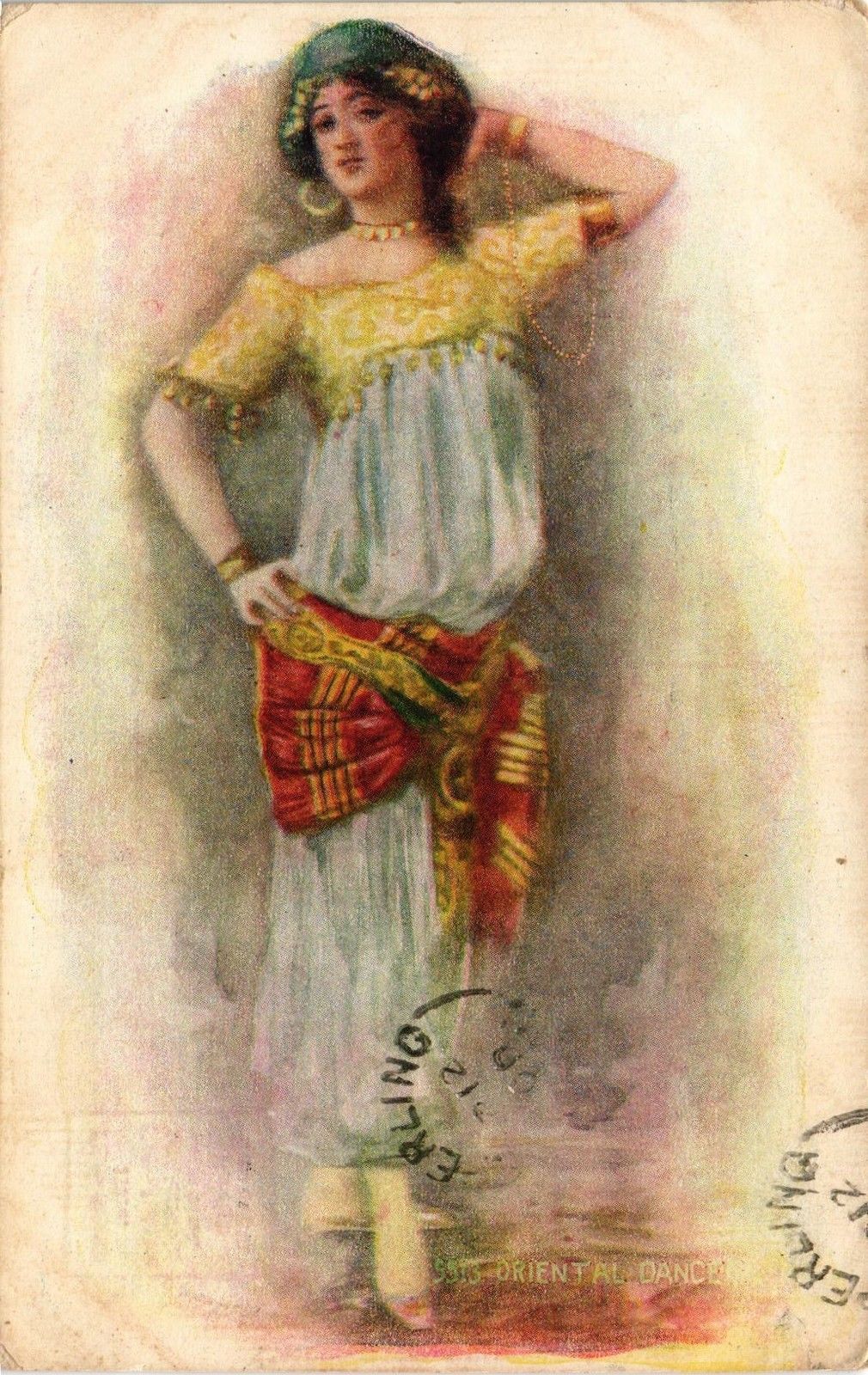 DR JIM STAMPS US POSTCARD PAINTING OF WOMAN DANCE 1909