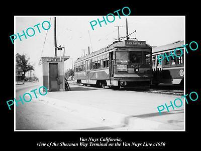 OLD LARGE HISTORIC PHOTO OF VAN NUYS CA, THE SW PACIFIC ELECTRIC RAIL DEPOT 1950