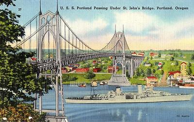 Title (ebay affiliate link): Portland, Oregon - The U.S.S. Portland passing under St. John''s Bridge - 1940s