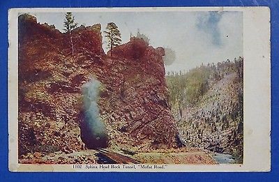 Title (ebay affiliate link): 1909 Postcard Denver & Salt Lake RR Sphinx Head Rock Tunnel Moffat Road CO