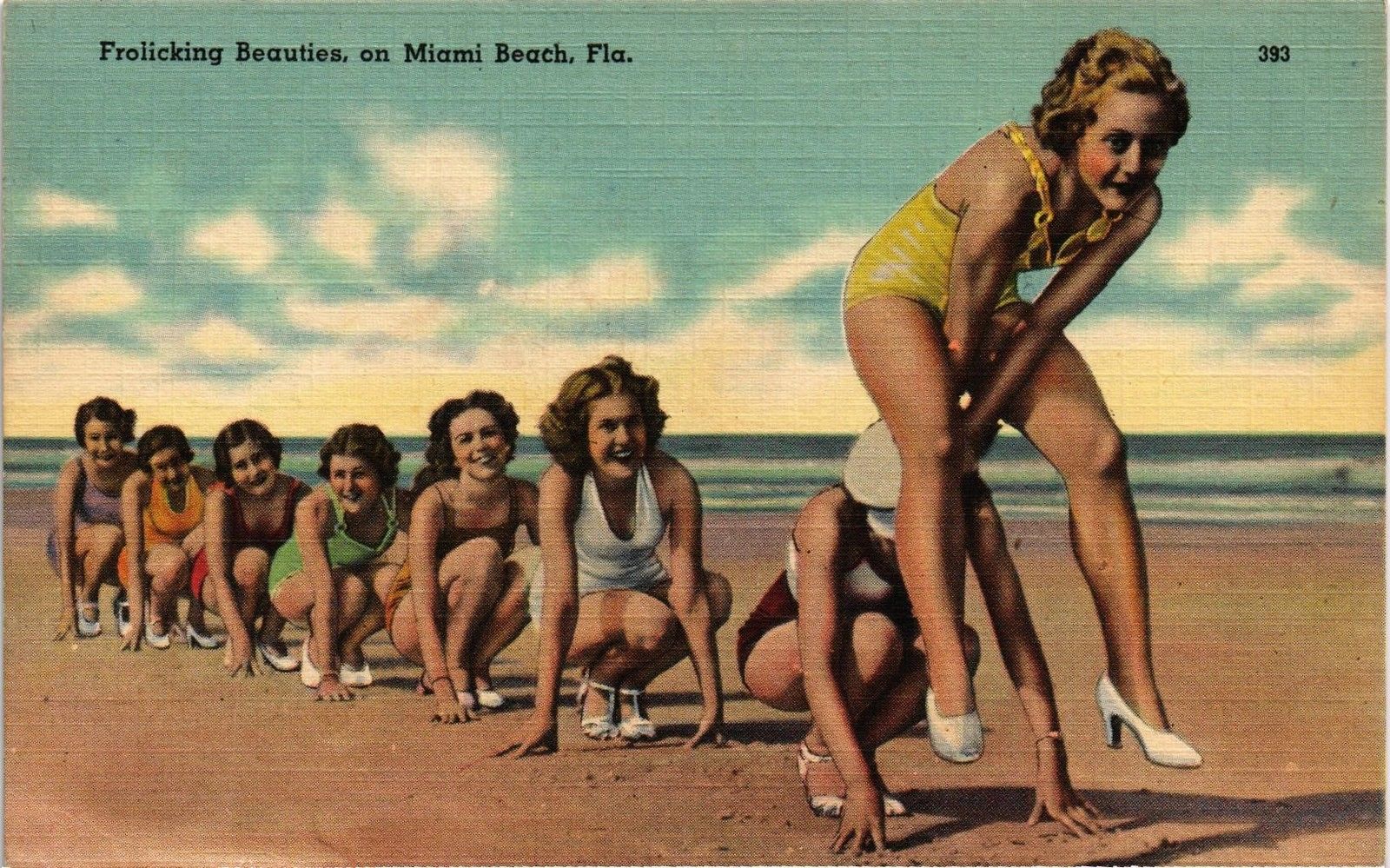 Title (ebay affiliate link): DR JIM STAMPS US POSTCARD LINEN FROLICKING BEAUTIES ON MIAMI BEACH FLORIDA