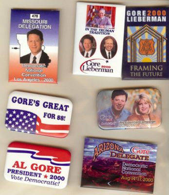 2000 AL GORE POLITICAL CAMPAIGN BUTTONS - GROUP B
