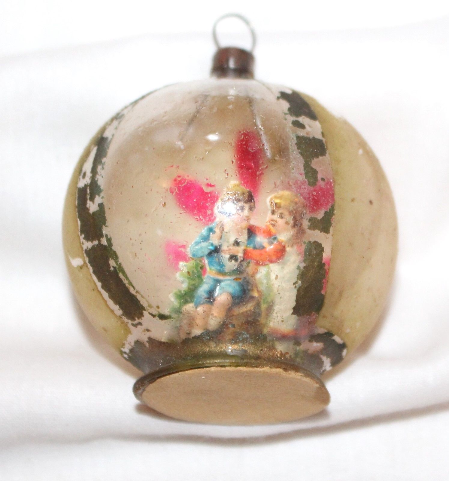 Title (ebay affiliate link): Paper Victorian Children, in Glass Globe. Unusual ornament. Early 1900s German.