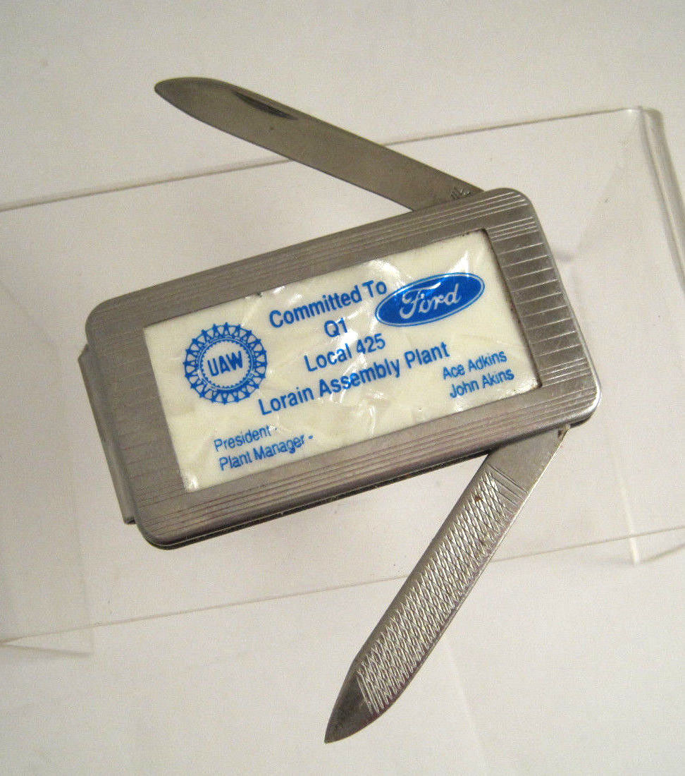 Vtg FORD UAW LOCAL 425 LORAIN OH POCKET KNIFE NAIL FILE MONEY CLIP Advertising