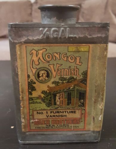 Title (ebay affiliate link): ANTIQUE BAER BROTHERS Tin Mongol Furniture Varnish Over 100 yrs old! Very Rare!