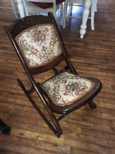 Title (ebay affiliate link): Antique Vintage Victorian Wood Youth Folding Rocker Rocking Chair Tapestry EXC!