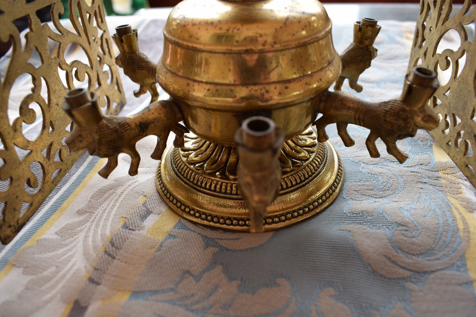 ANTIQUE RARE SPANISH OIL LAMP LION LIGHTS