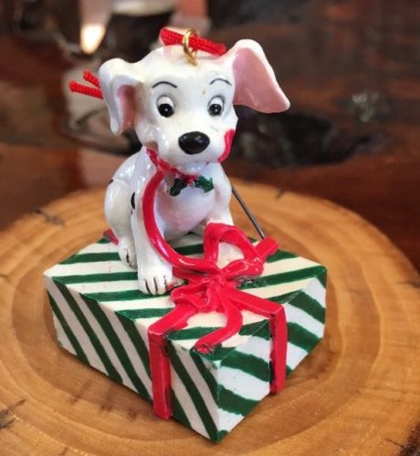 Title (ebay affiliate link): Disney 101 Dalmatian Ornament, Puppy Dog on Gift, Christmas Holiday Decor