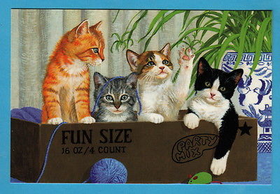 Title (ebay affiliate link): Four kittens in a box with threads under a flower, Modern Russian card