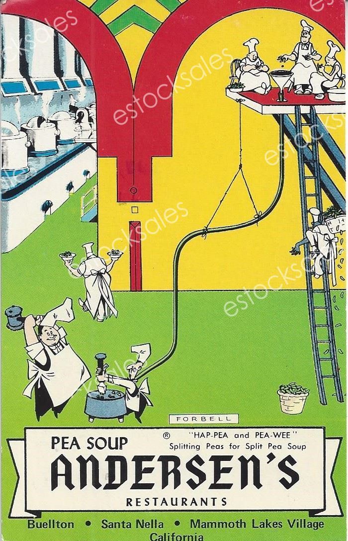 Title (ebay affiliate link): Vintage Postcard - Pea Soup, Andersen''s Restaurants, California