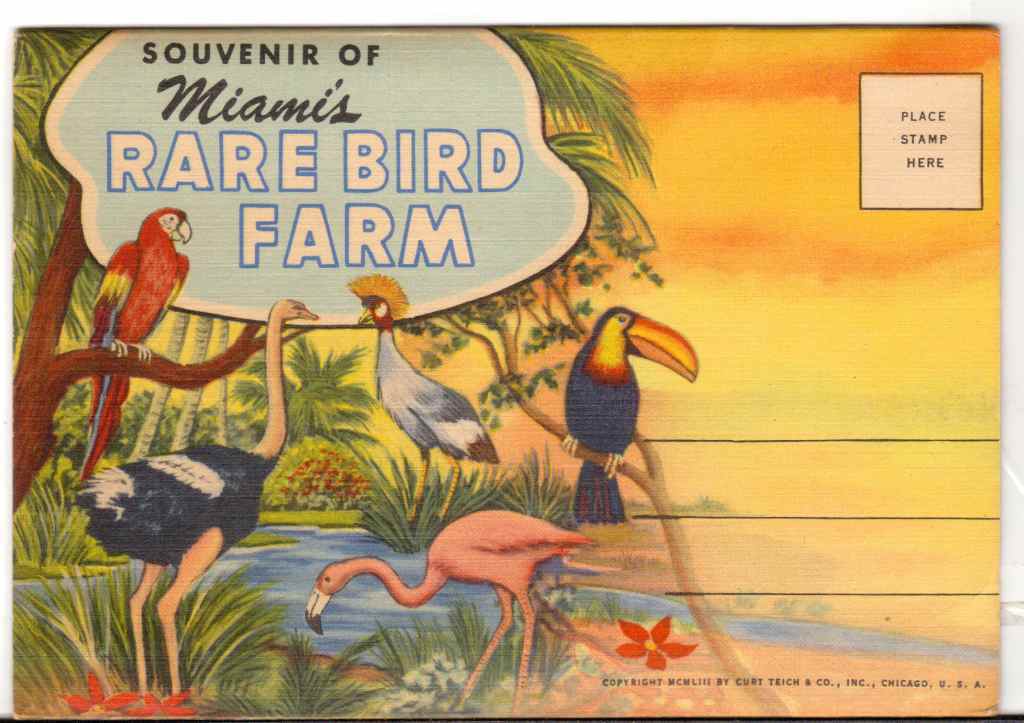 Title (ebay affiliate link): Undated Unused Postcard Souvenir Folder of Miamis Rare Bird Farm Florida FL