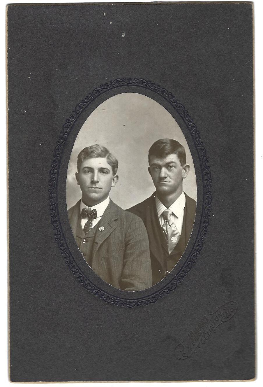 1904 era CABINET PHOTO OF MEN - ONE WEARING A ROOSEVELT - FAIRBANKS JUGATE PIN