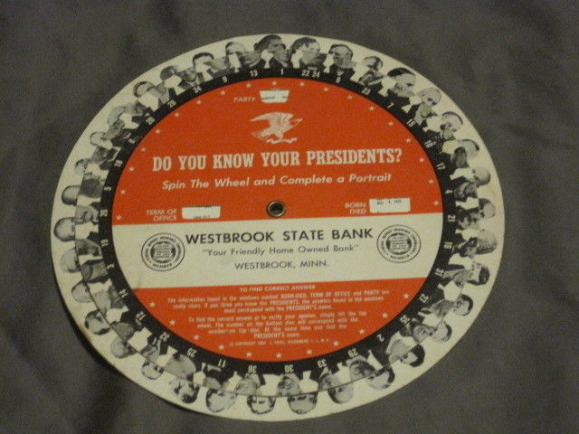 Title (ebay affiliate link): 1960''s Presidential "Do you know your Presidents?" spinner John F Kennedy JFK