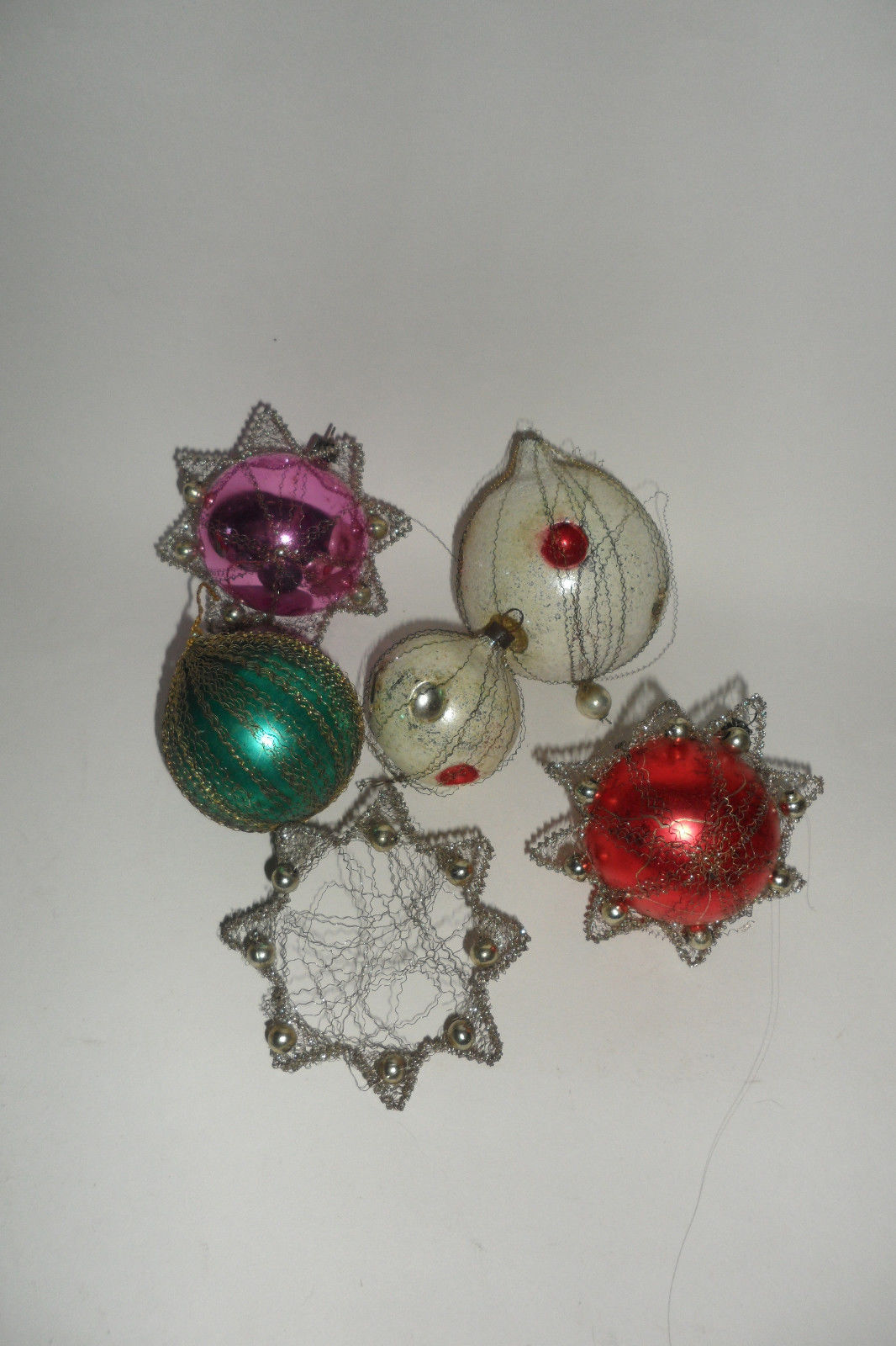 Title (ebay affiliate link): VINTAGE WIRE WRAPPED GLASS CHRISTMAS ORNAMENTS + EXTRA WIRE STAR