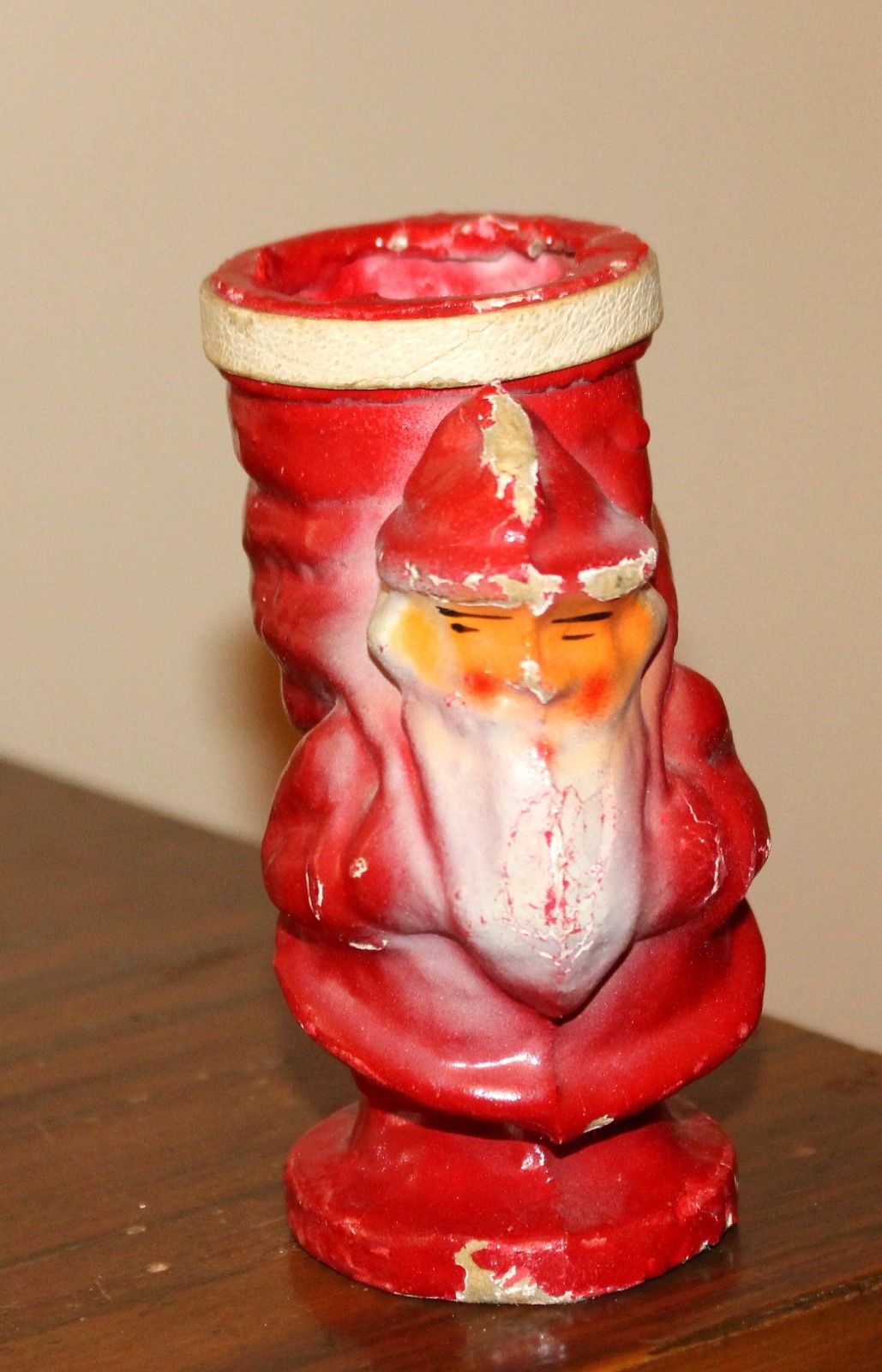 Title (ebay affiliate link): Papier-Mache Santa Claus with pack on Shoulders. USA. Candy Container.
