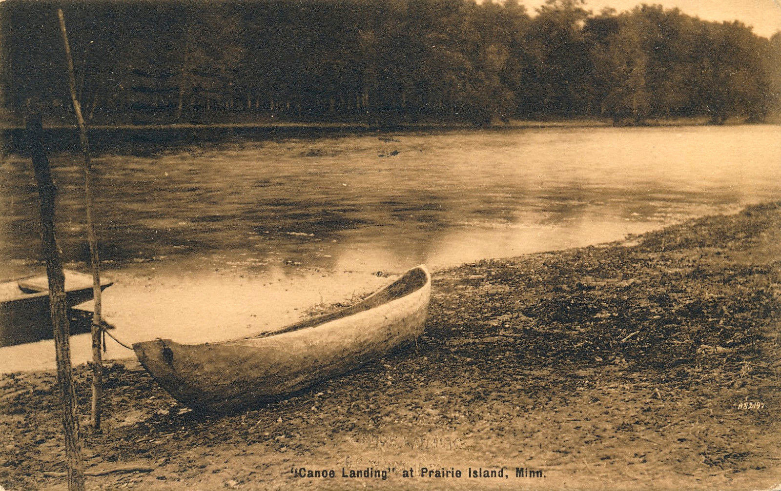 "CANOE LANDING" AT PRAIRIE ISLAND, MINN. MN. MINNESOTA. RIVER VIEW.