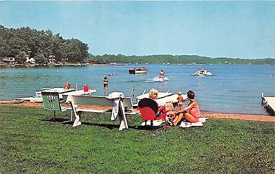 Angola Indiana~Beach Scene @ Lake James~Water Skiing~Lady & Children~c1950s Pc
