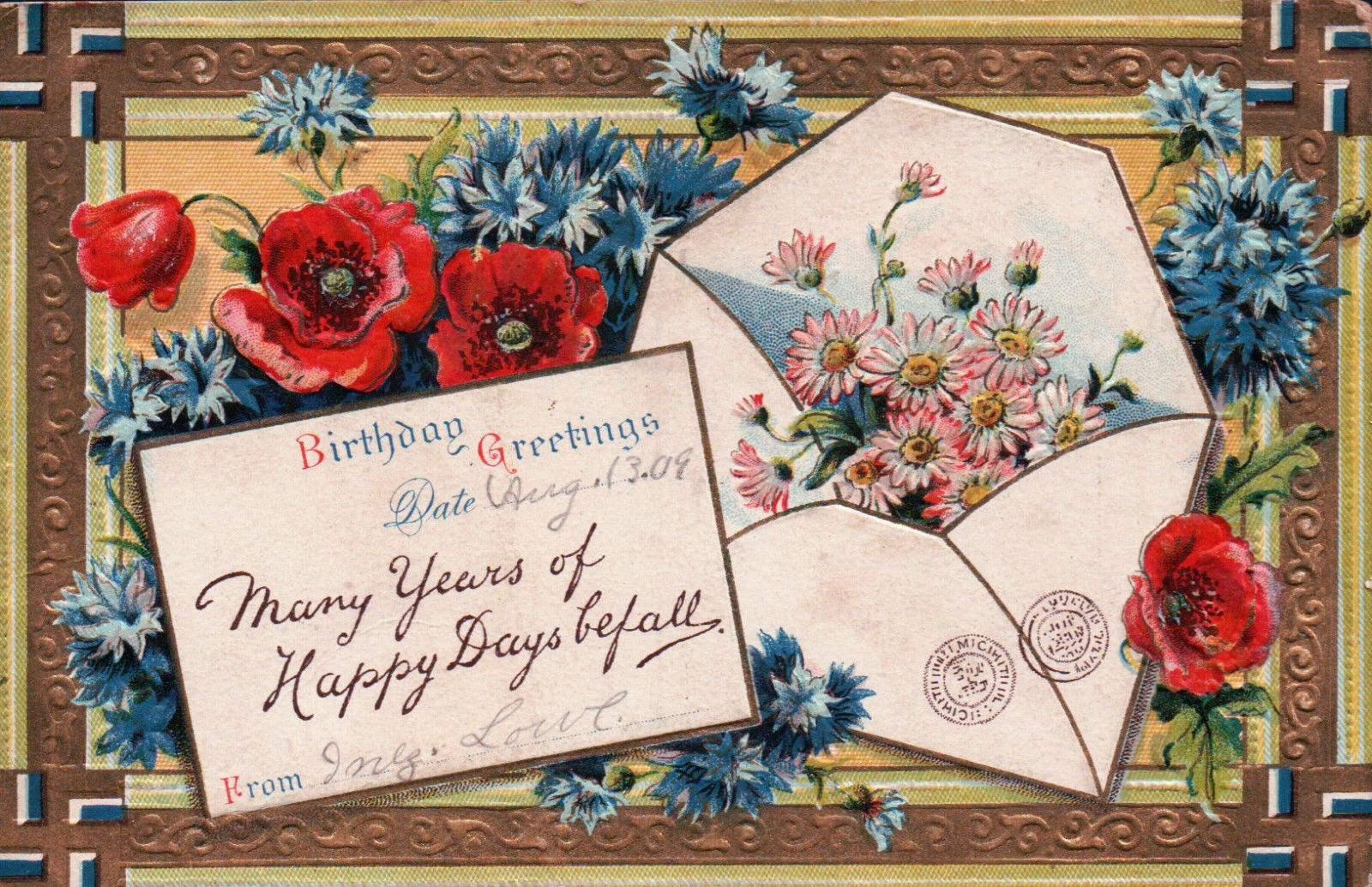 1909 POPPIES, DAISIES, Blue Flowers, Envelope Swastika Corners Vintage Postcard
