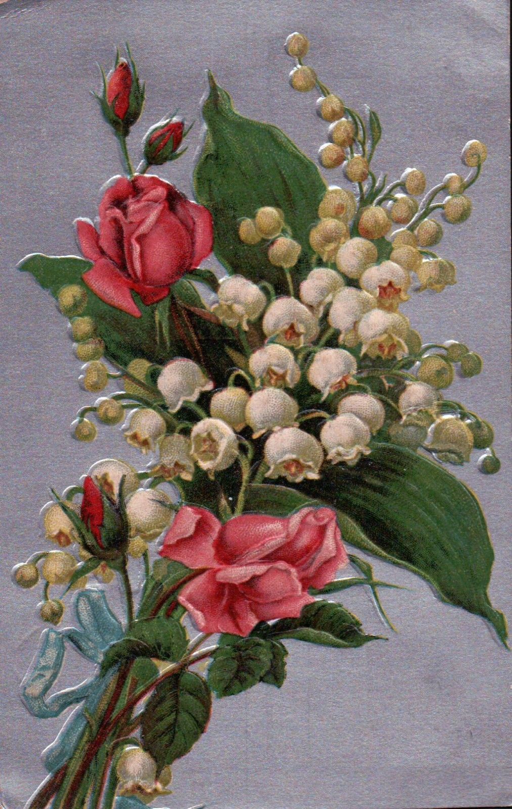 Title (ebay affiliate link): Gorgeous 1910 LILY OF THE VALLEY & ROSES Bouquet Vintage Postcard