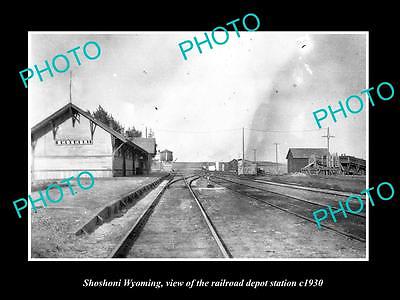 OLD LARGE HISTORIC PHOTO OF SHOSHONI WYOMING, THE RAILROAD DEPOT STATION c1930