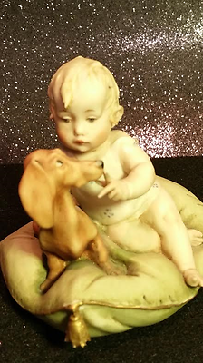 Title (ebay affiliate link): Capodimonte "Little Friends" Unmarked Figurine - Dachshund & Young Girl