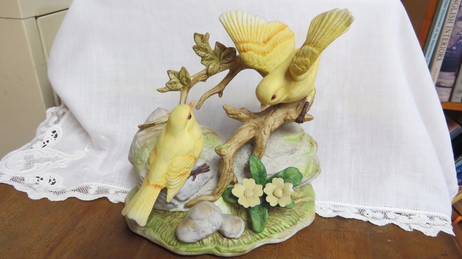 Title (ebay affiliate link): CAPODIMONTE Style PORCELAIN Yellow Birds & Flower FIGURINE