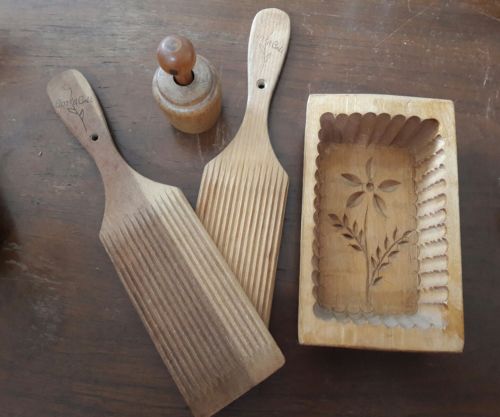 Title (ebay affiliate link): ANTIQUE PRIMITIVE WOODEN BUTTER MOLD, BUTTER PAT AND PADDLES
