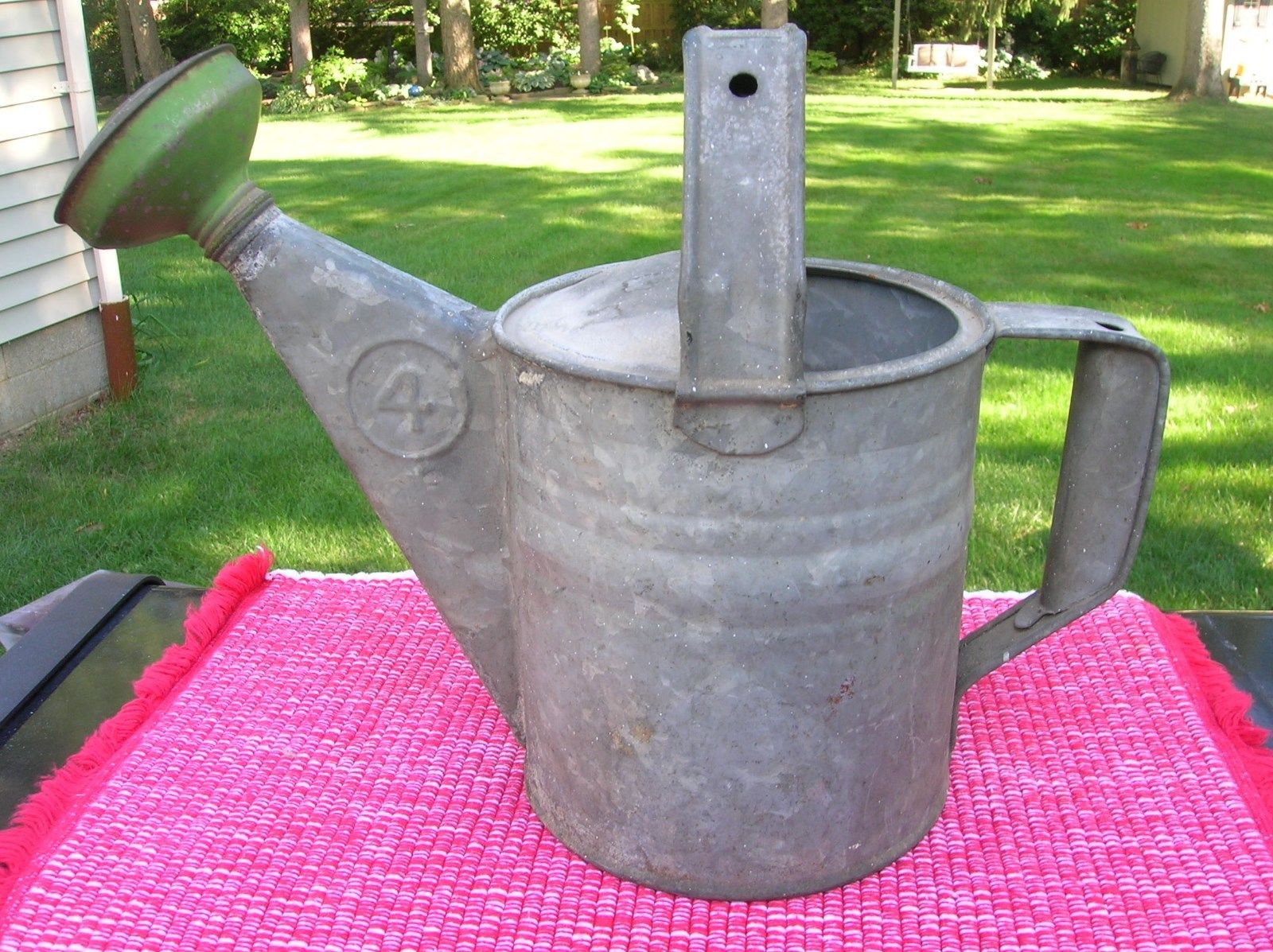 Title (ebay affiliate link): RARE SM PRIMITIVE 1 GAL #4 METAL FLOWER GARDEN WATERING CAN W ITH SPRINKLER HEAD