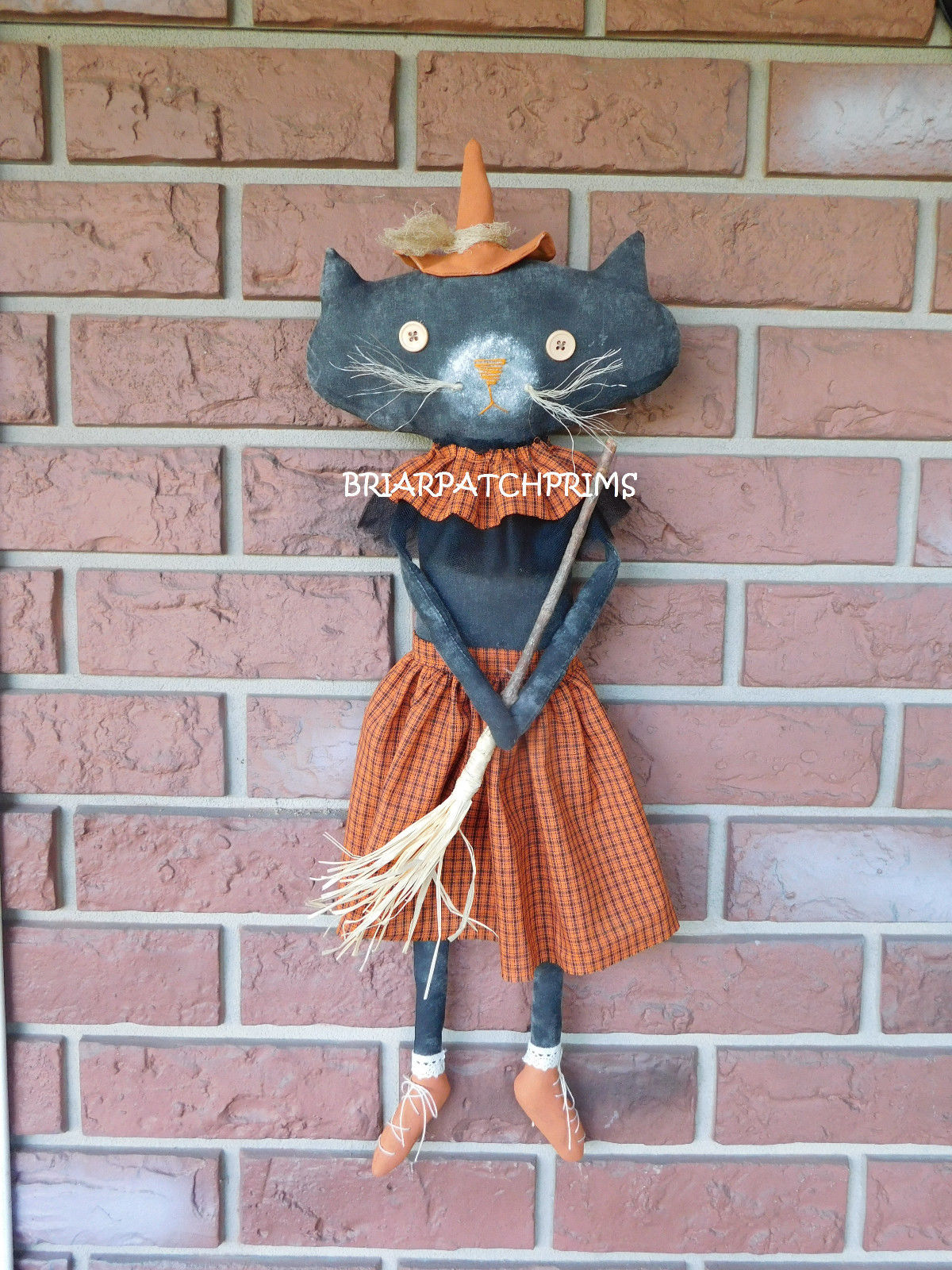 Title (ebay affiliate link): Primitive 23" Halloween Cat Witch Doll w her Broom Kitty Fall Decoration Folk