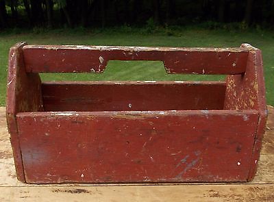Primitive Farm Barn Old Wood Tool Tote Box / Make Do Cubby Box Shelf Old Paint