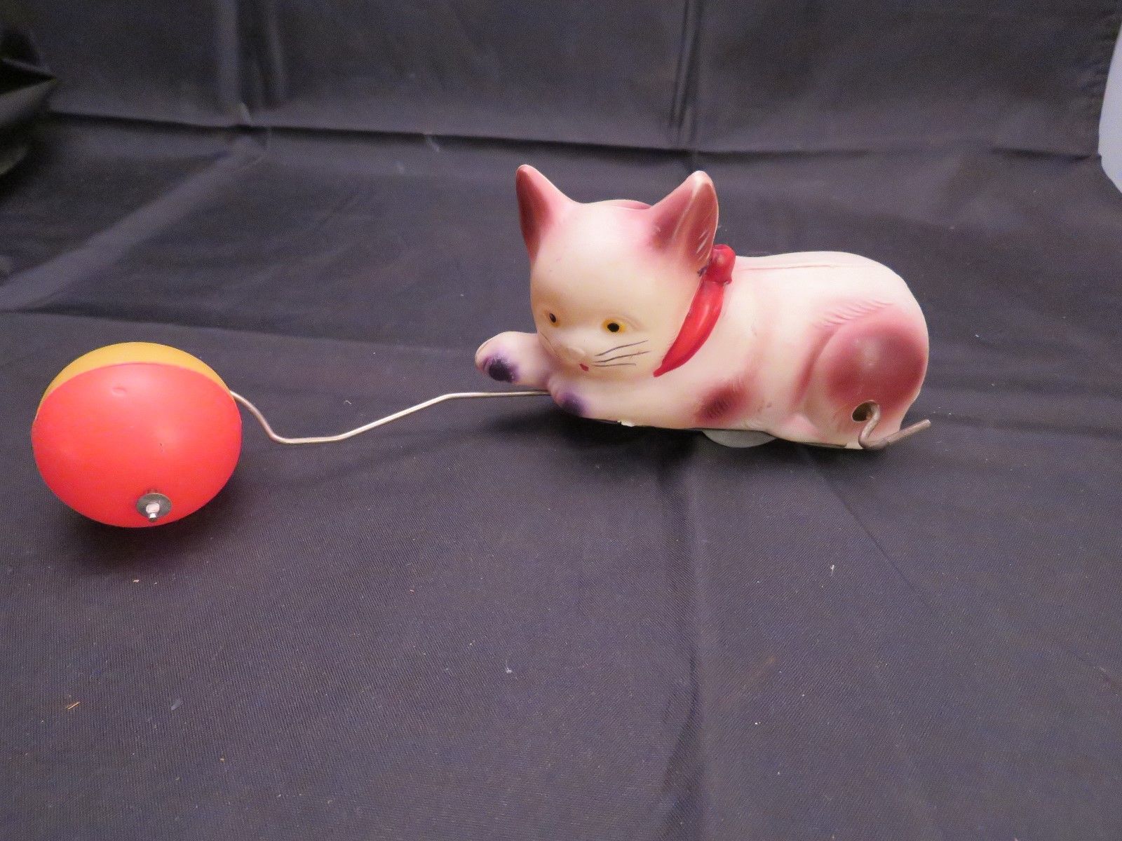 Title (ebay affiliate link): Vintage Occupied Japan Celluloid Cat Chasing A Ball, Wind Up Toy