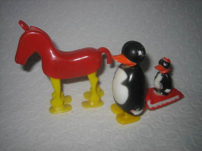 PAIR OF VINTAGE RETRO 1950'S PLASTIC RAMP WALKER TOYS