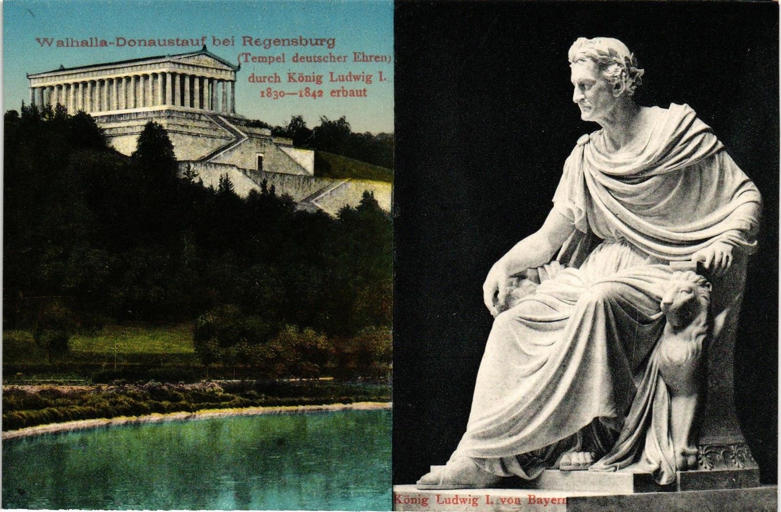 DR JIM STAMPS POSTCARD STATUE AND WALHALLA MEMORIAL DONAUSTAUF GERMANY