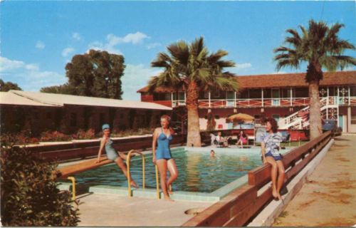 (#472) Pinup Girls Bathing Beauties El Rancho Inn Glendale AZ 1950s Postcard