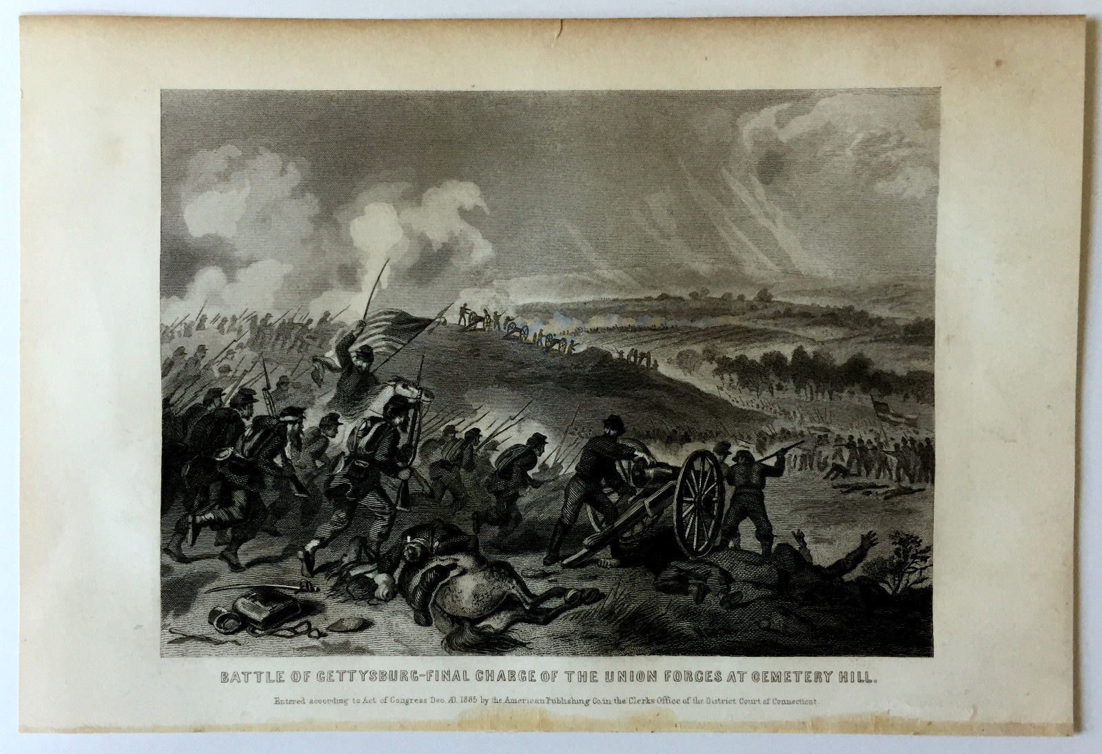 Title (ebay affiliate link): BATTLE GETTYSBURG-FINAL CHARGE OF UNION FORCES AT CEMETERY HILL 1865 ENGRAVING !