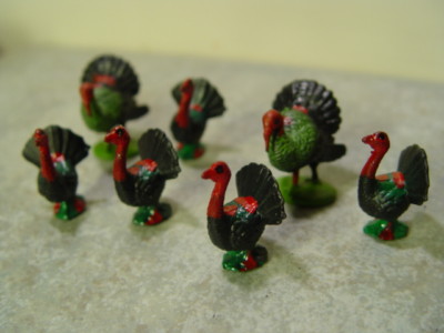 Vintage Play Set Turkey Figures Hard Plastic Miniatures
