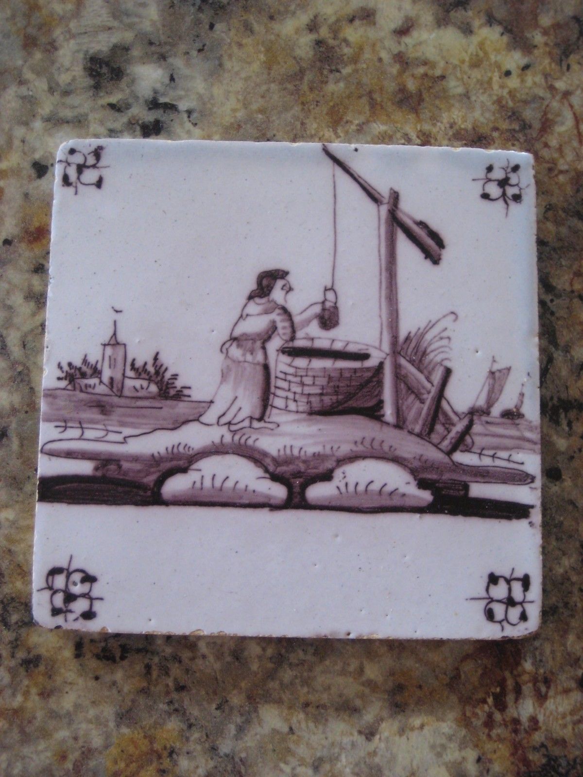 Title (ebay affiliate link): ANTIQUE HAND PAINTED DUTCH CERAMIC TILE HOLLAND AMSTERDAM FARM WELL PHEASANT