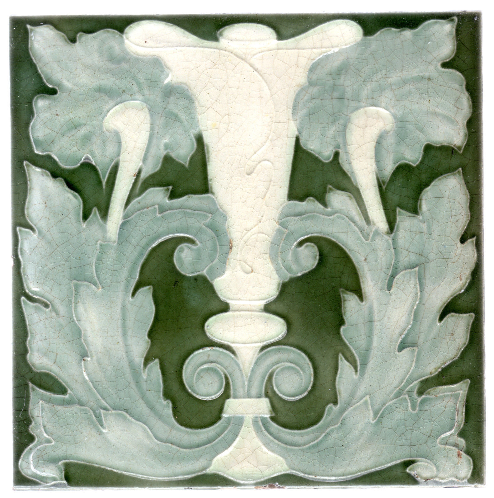 Title (ebay affiliate link): Antique - Art Nouveau - Abstract White Flower & Green Leaves - c.1905