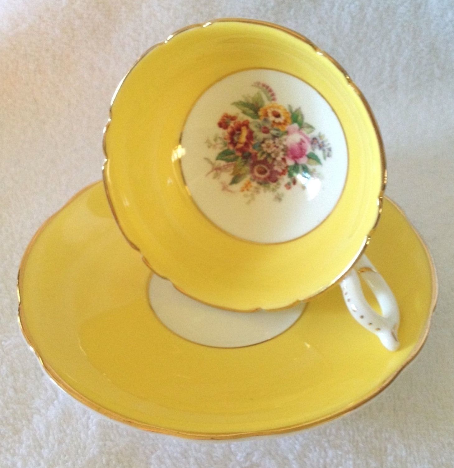 Title (ebay affiliate link): COALPORT TEA CUP & SAUCER SET BRIGHT YELLOW & FLORAL PATTERN TEACUP WIDE MOUTH